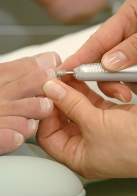 - Feilen der Zehennägel mit Entfernen des Nagelpilz.